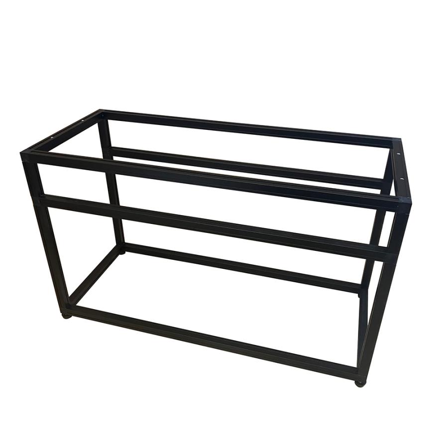 ローテーブルのフレーム部分には黒アルマイトのアルフレームを使用しました。黒のアルフレームは現状A-1とB-1の二種類のみで、製作できる形は限られてしまうのですが今回はシルバーよりも家具として馴染む黒を選びました。