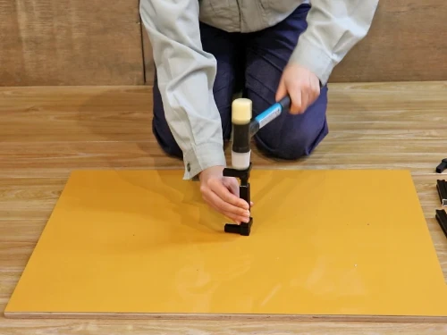 どちらかの角を先に全て叩きこまず、両側均等に少しずつ叩き込むようにします。