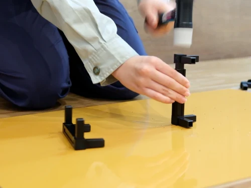 底面から出ているジョイントの脚に、先ほど作ったひっかけ部分を組み合わせます。