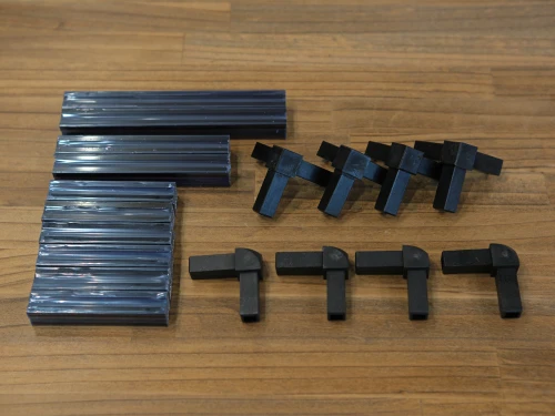 次にひっかけ部分を組み立てます。底面と同じようにフレームの両端にジョイントを入れます。